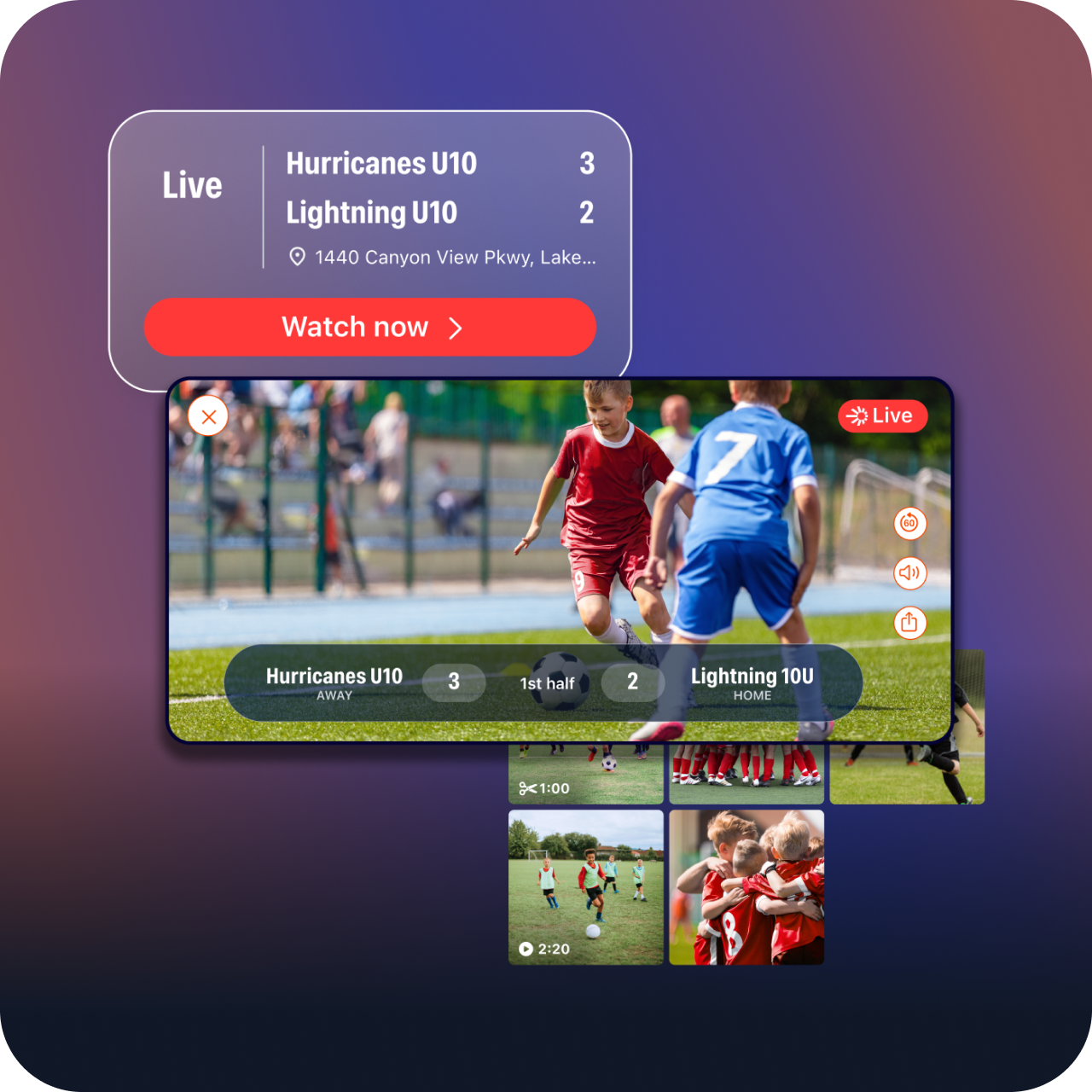With live streaming built in (and free), you can watch from anywhere or bring the game to any of your players' fans who can't make it in person.
