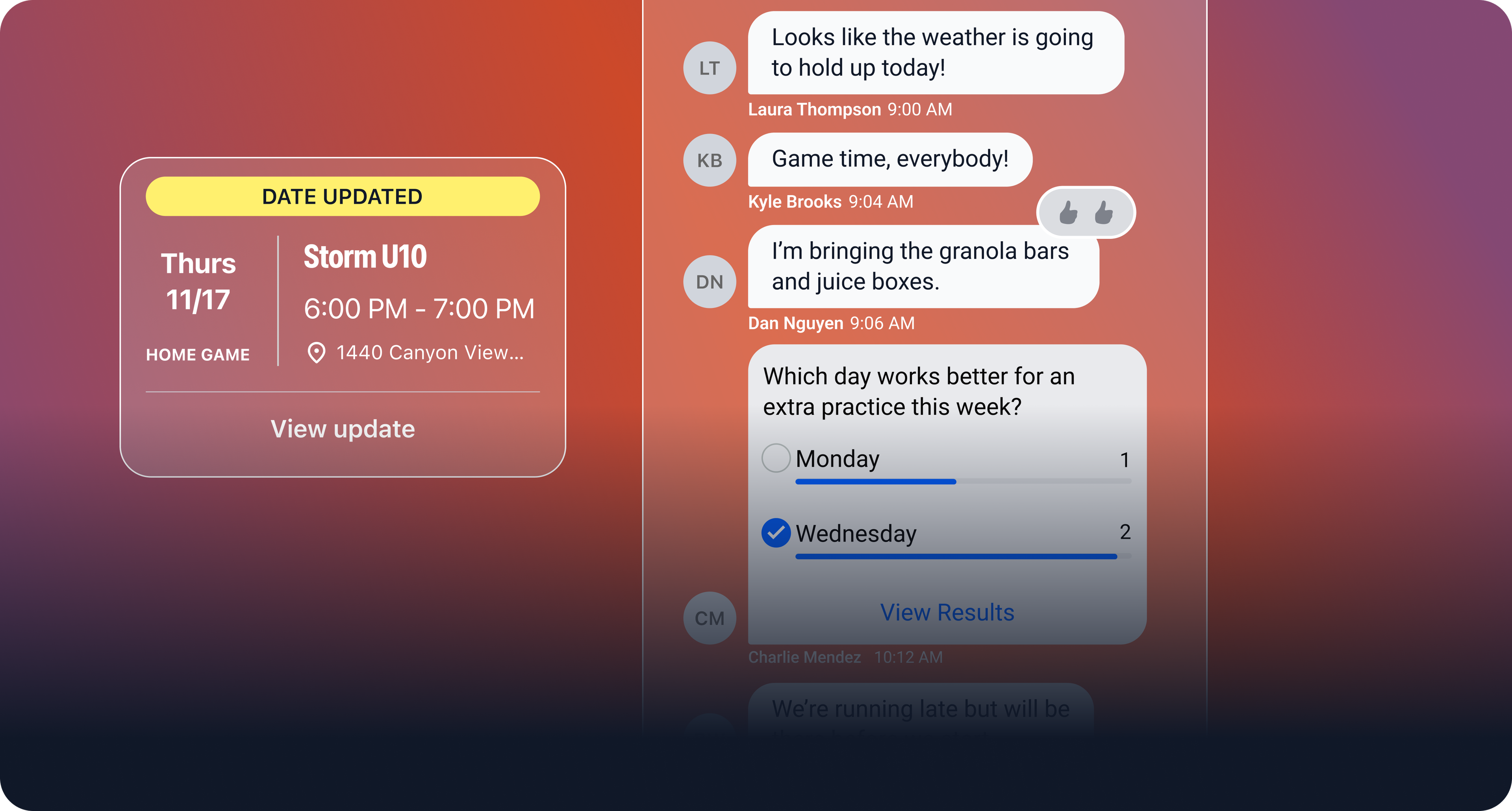 Stay effortlessly up to date, with next-gen team chat and a unified view of all your team schedules, automatically synced to your preferred calendar.
